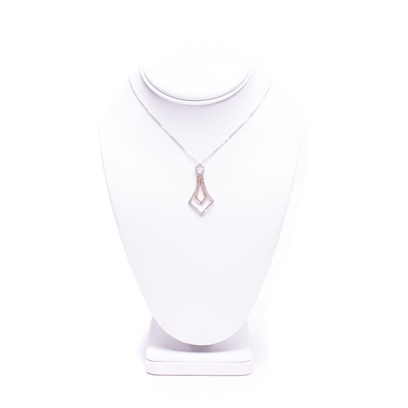 Here we have a brand new never worn ladies white/rose gold and natural diamond pendant.