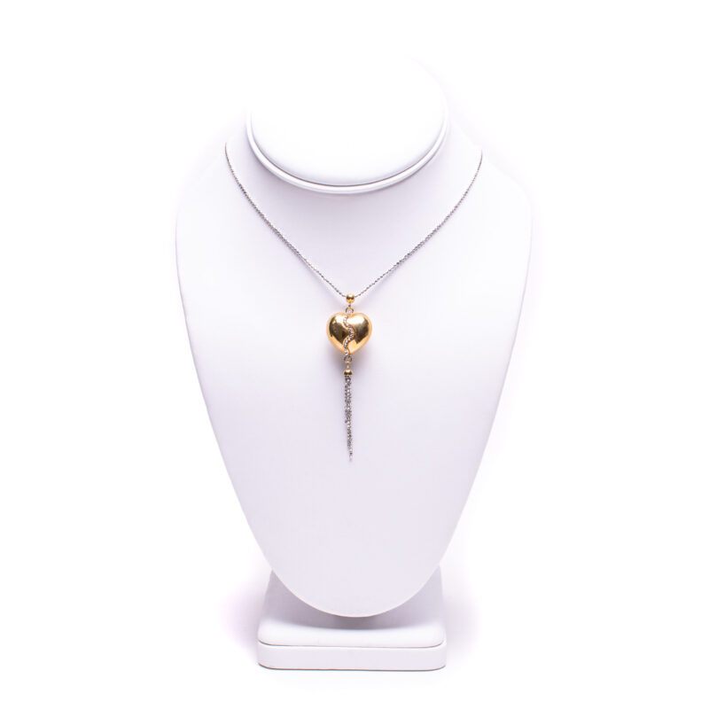 Here we have a brand new never worn ladies two-tone gold & natural diamond necklace.
