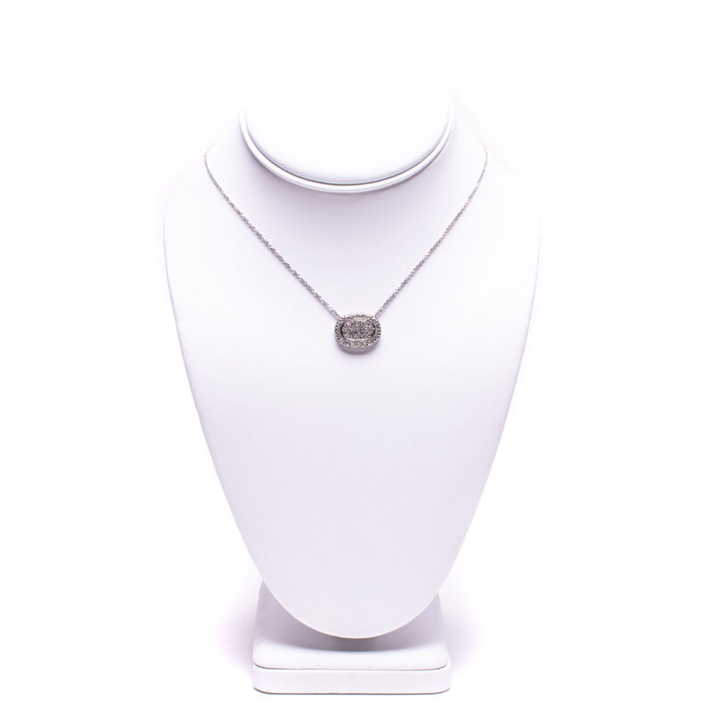 Here we have a brand new never worn ladies white gold and natural diamond necklace.