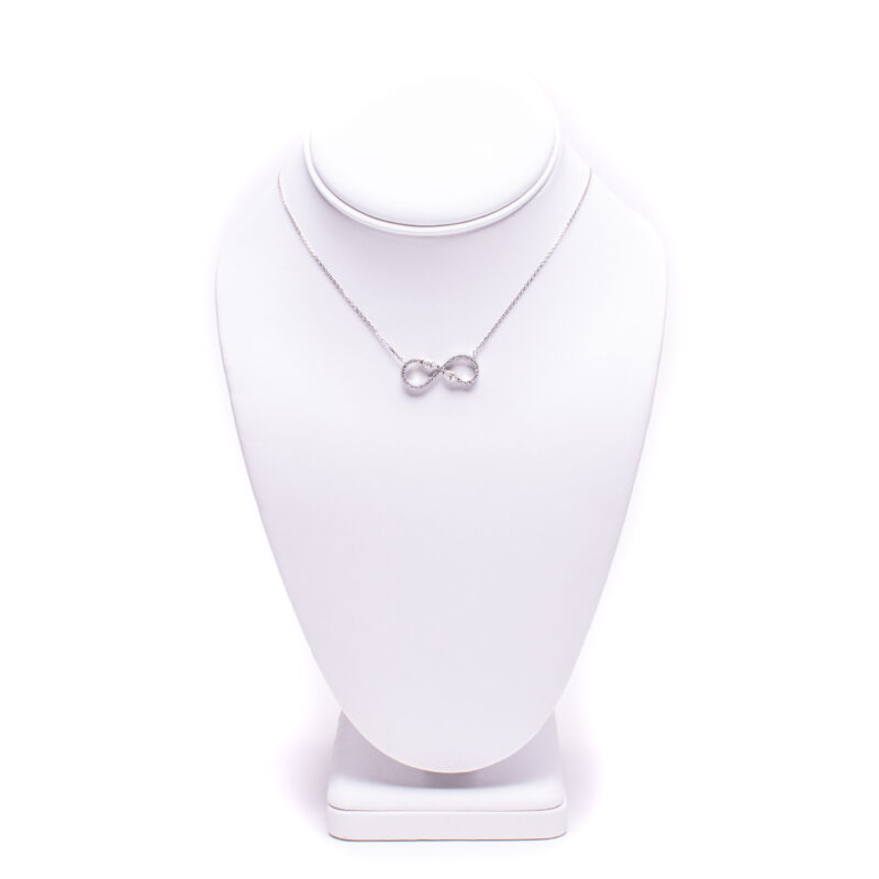 Here we have a brand new, never worn Ladies 14 Kt White Gold Natural Diamond Necklace.