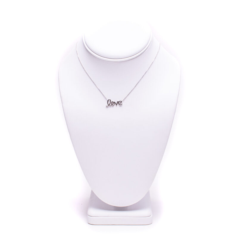 Here we have a brand new never worn ladies white gold “love” necklace..