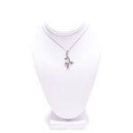 Here we have a brand new never worn ladies white gold w/black rhodium, green garnet, ruby & natural diamond pendant.